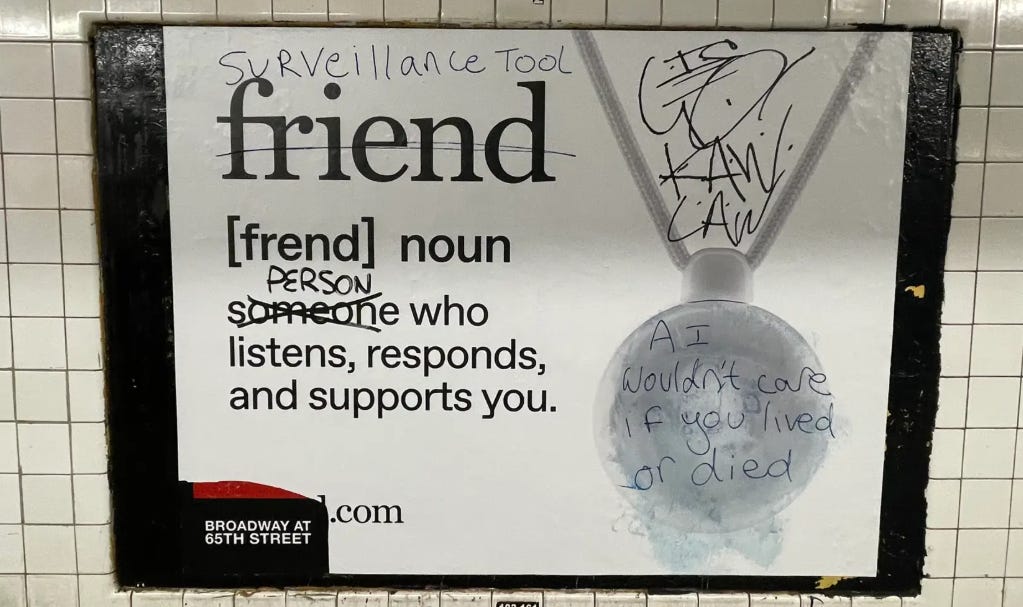 When you name your product “Friend” with a capital F, when you plaster subways with messages telling people they don’t need more friends, when your launch videos that show users choosing AI over human interaction, you’ve made your positioning clear.