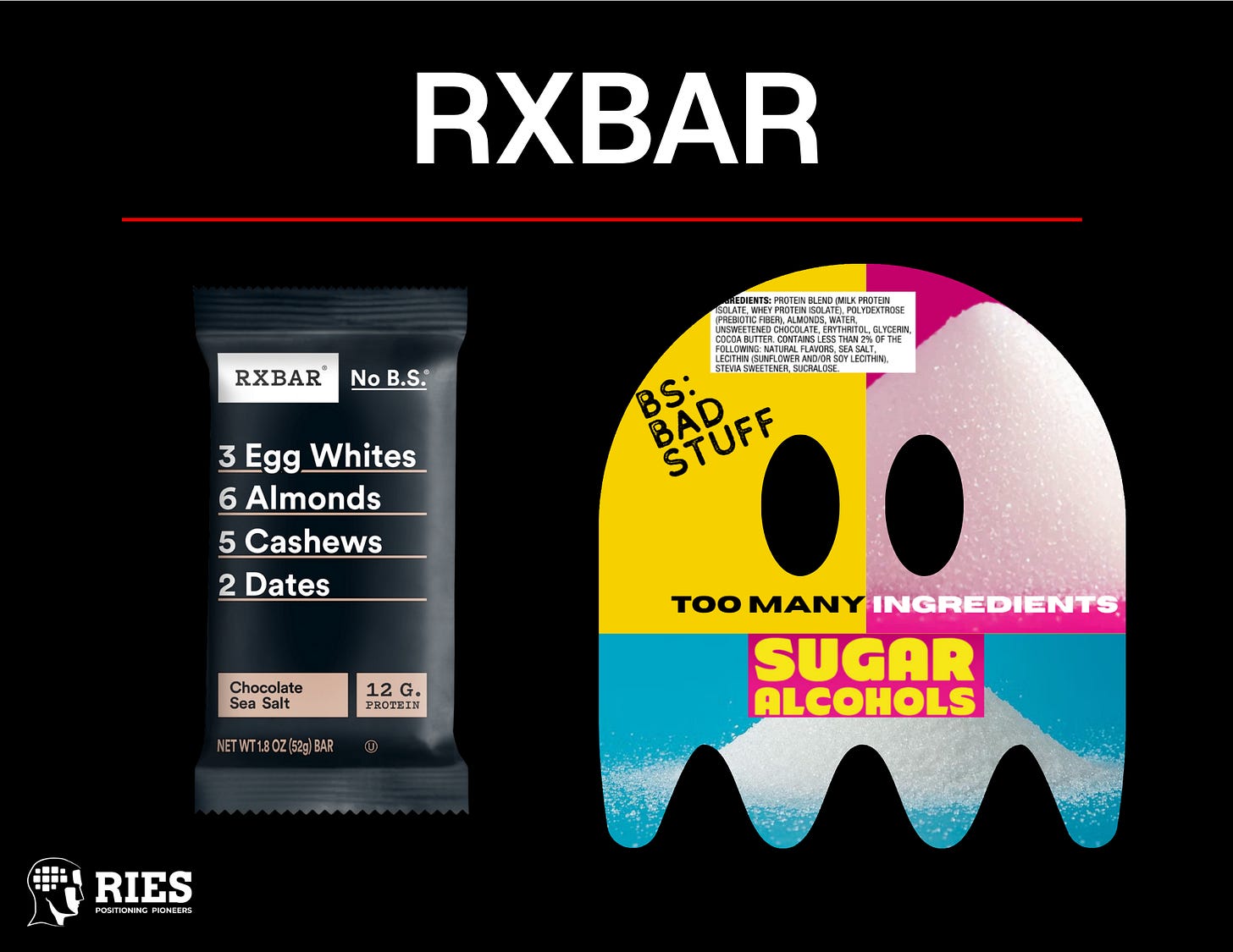 RXBAR didn’t just list ingredients on the front of the package, it exposed the lies of the others filled with B.S. (Bad Stuff) While other bars hide the bad stuff in the fine print, RXBAR made “no B.S.” its rallying cry. It’s not just what’s in the bar, it’s what isn’t.