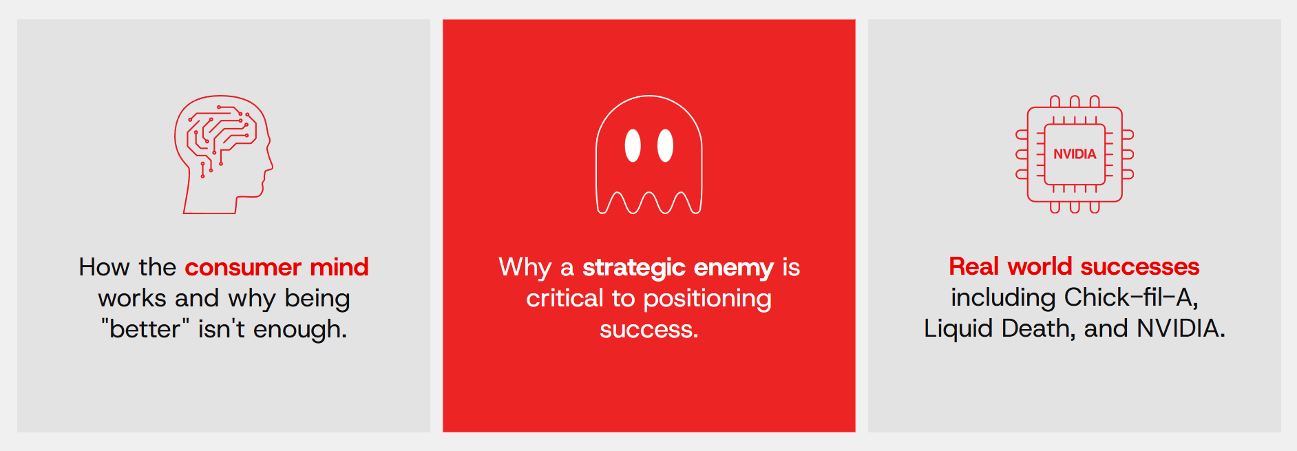 The mind understands opposition faster than superiority. Identifying the strategic enemy forces you to clearly define what you are not, which enables consumers to more easily understand what you are.