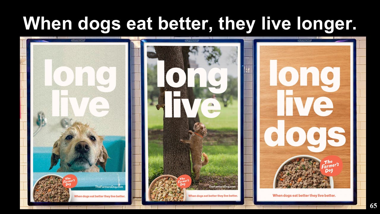 This gives the battlecry Long Live Dogs emotional power and makes Farmer’s Dog a brand worth fighting for, by standing up against highly processed food.