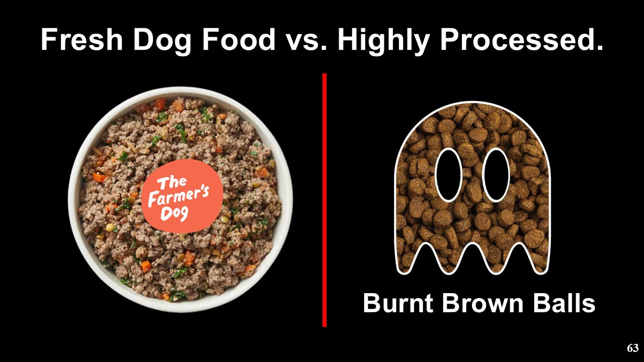 The Farmer’s Dog is specific about being fresh and not highly processed. Dry dog food is highly processed. They brilliantly call it out as burnt brown balls. Eating highly processed food every meal of your life isn’t good for humans, why would you feed that to your dog? Hard to argue with that!