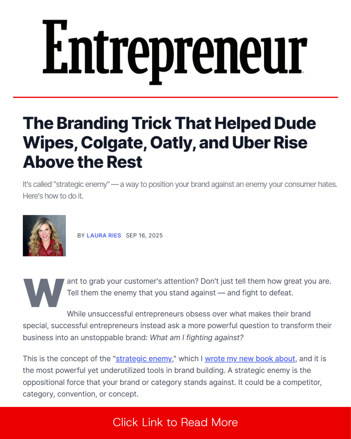 Positioning against a strategic enemy makes your position not just sharper and more memorable — it energizes and motivates consumers to rally for your cause.