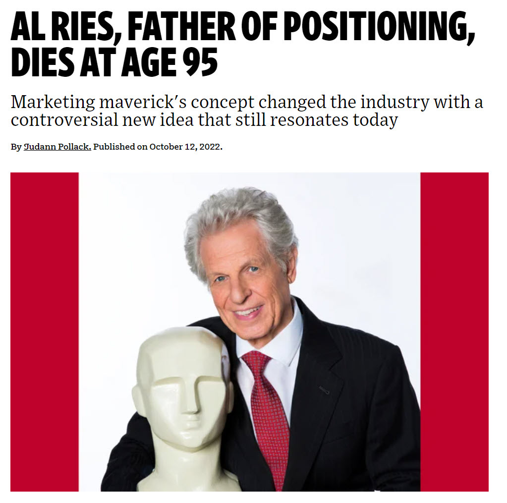 In 2022, a month shy of his 96th birthday, Al passed. It was heartbreaking but the outpouring of affection and appreciation for his extraordinary life was mind blowing. He had a simple idea and he changed the world forever. Al Ries was kind, gracious, funny, smart and the best dad ever.